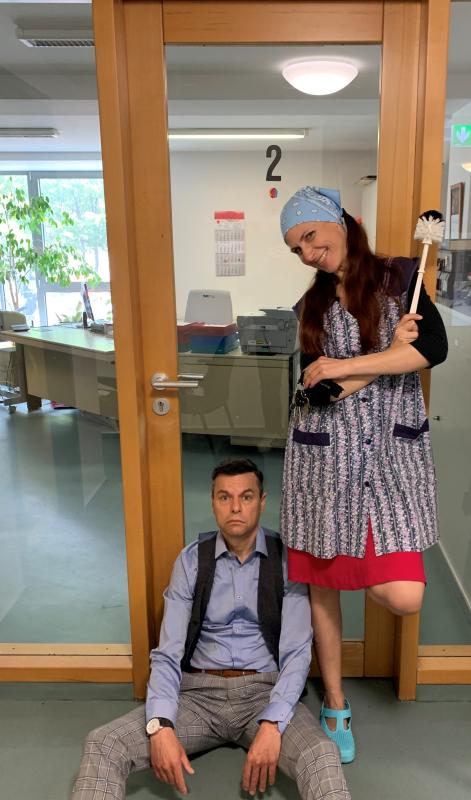 Zwei unterschiedliche Figuren geben einen satirischen und unterhaltsamen Einblick in die heutige Arbeitswelt und die Konsequenzen für das Leben der Mitarbeiter.